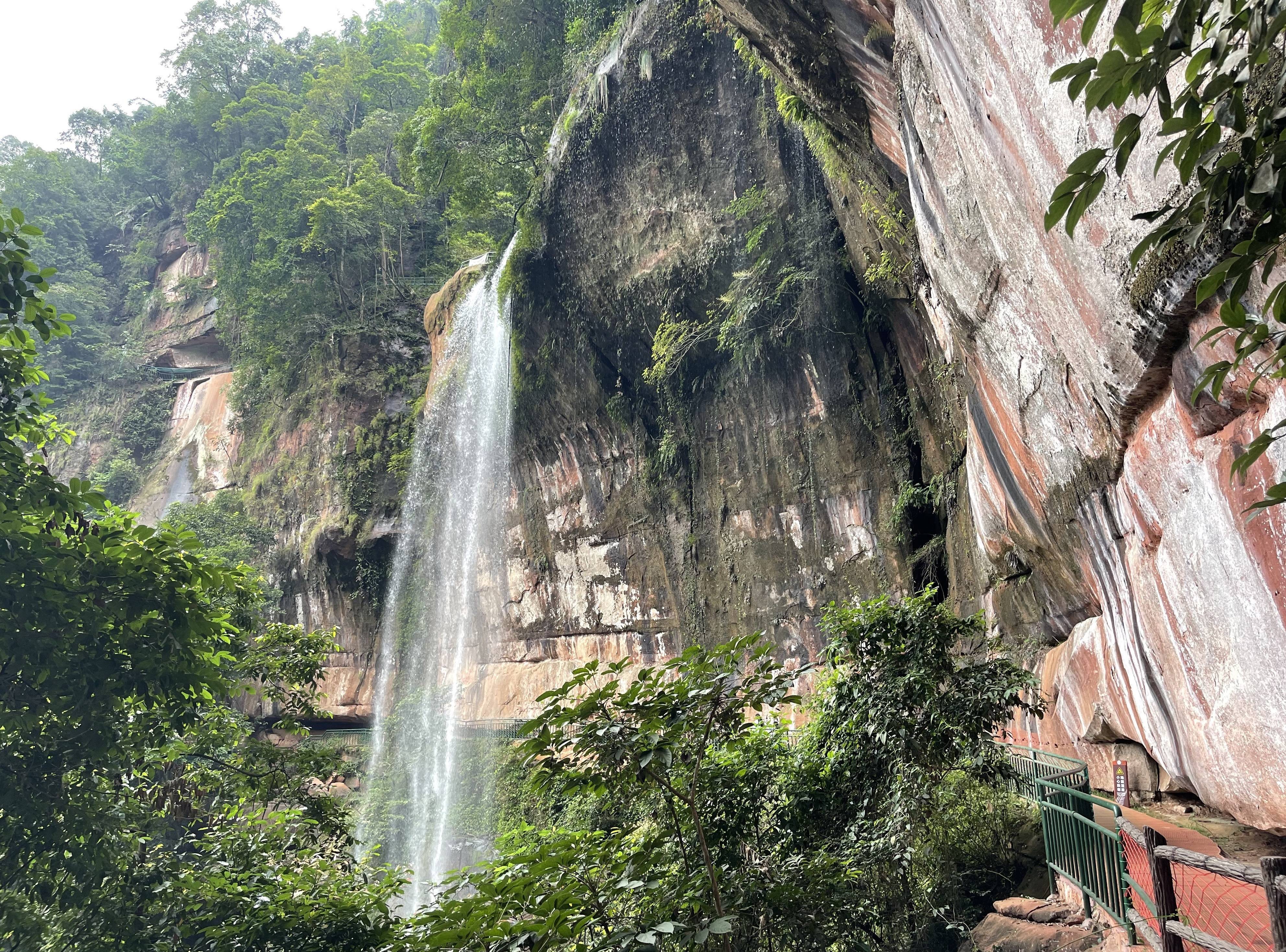 随行的导游指着岩壁的层理结构介绍,赤水丹霞是我国青年早期丹霞地貌的典型代表,为全国面积最大、发育最壮观的丹霞地貌群,享有“赤水丹霞冠华夏”之誉。